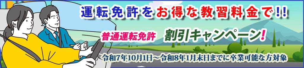 お得な割引料金で普通運転免許を! 詳細は最新情報のページを御覧ください。